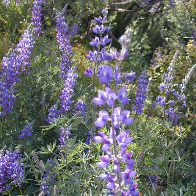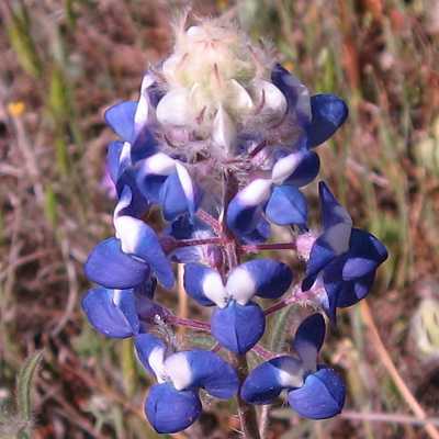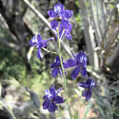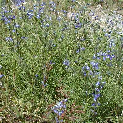 12'. Dark or pale blue flowers in spikes. The 2 lower petals