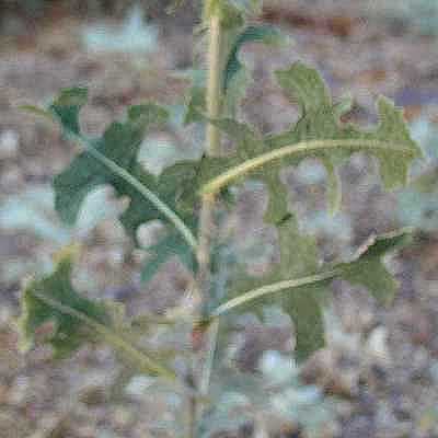 has broad, gray-green, pinnate lobed leaves. Yellow