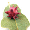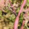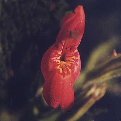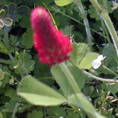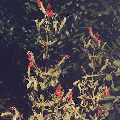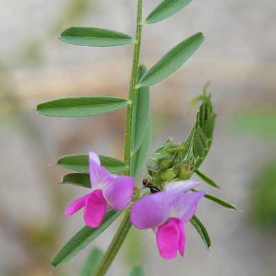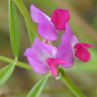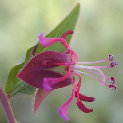 red-purple flowers near the base of each leaf. 48 pairs of narrow