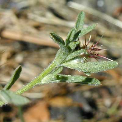 below. Cottony-haired leaves linear, extending down the stem. Well branched.