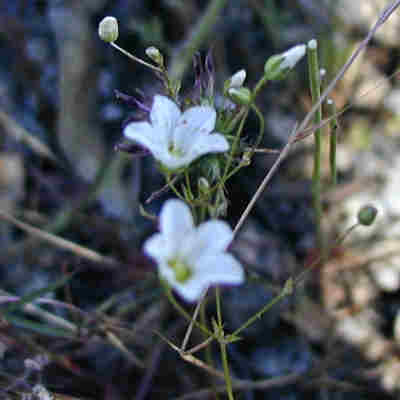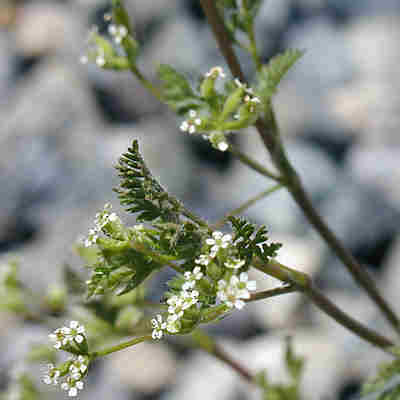 Annual herb, 1–3'. Numerous tiny white flowers in