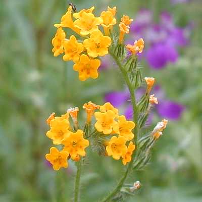 Annual or perennial herb, 836". Four-petaled yellow to purplish flowers are small (½") and odd,