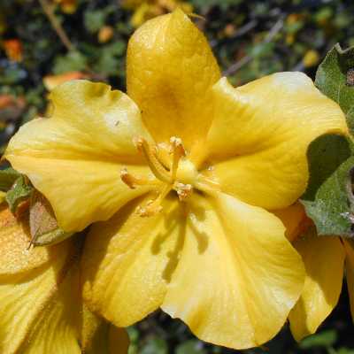 Annual herb, 28". Clear yellow 4-petaled flowers