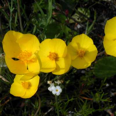 Annual herb; creeper. Small (¼½) 5-petal yellow to yellow-orange flowers. Pinnate leaves 12", opposite.