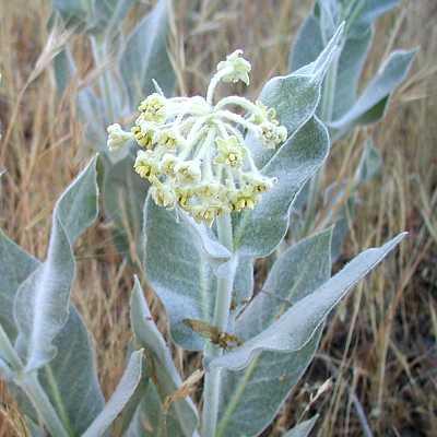 leaves with rounded tips. Lower leaves scattered along stem. Stem smooth.