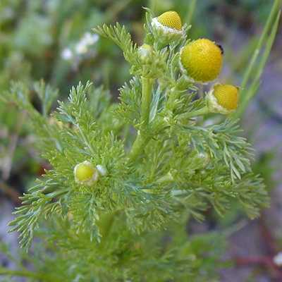 Annual herb, 212". Yellow, conical flowerheads (¼½") nestled in soft,