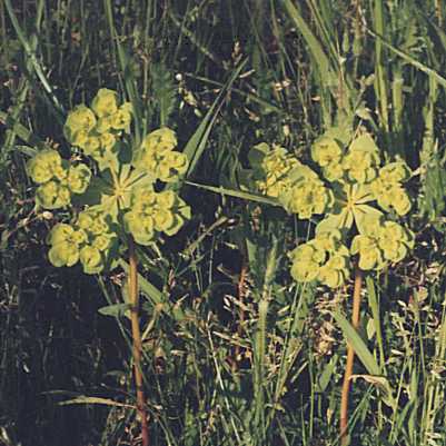 Not native. The acrid, milky sap of Spurges may burn the lips & mouth. Plants may cause
